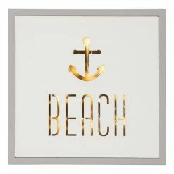 Twentyfour LED-Leuchtschild Beach – Sperrholzplatte – Weiß / Grau