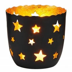 - Weitere Qualitätsmerkmale: Dieser schwarze Teelichthalter in Form einer Schale mit ausgestanzten Sternen macht Kerzenlicht zum reinsten Vergnügen und lässt Ihr Zuhause jedes Mal in einem neuen Licht erscheinen. Die Innenseite in Antik wirkendem Gold sorgt für warme Funkeleffekte. Jetzt heißt es für Sie: Losstöbern und zündende Ideen finden. In weiteren Varianten erhältlich.