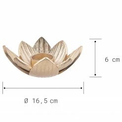 - Weitere Qualitätsmerkmale: Luxuriöses Gold und exotisches Dschungelfieber – wenn diese beiden Trends gemeinsame Sache machen, kann das Ergebnis nur ein echter Blickfang sein. So wie bei dem Golden Nature Teelichthalter Lotus in Gold aus Aluminium. Da haben Sie doch sicher schon eine Idee, wo dieses Schmuckstück bei Ihnen für Aufsehen sorgen darf.