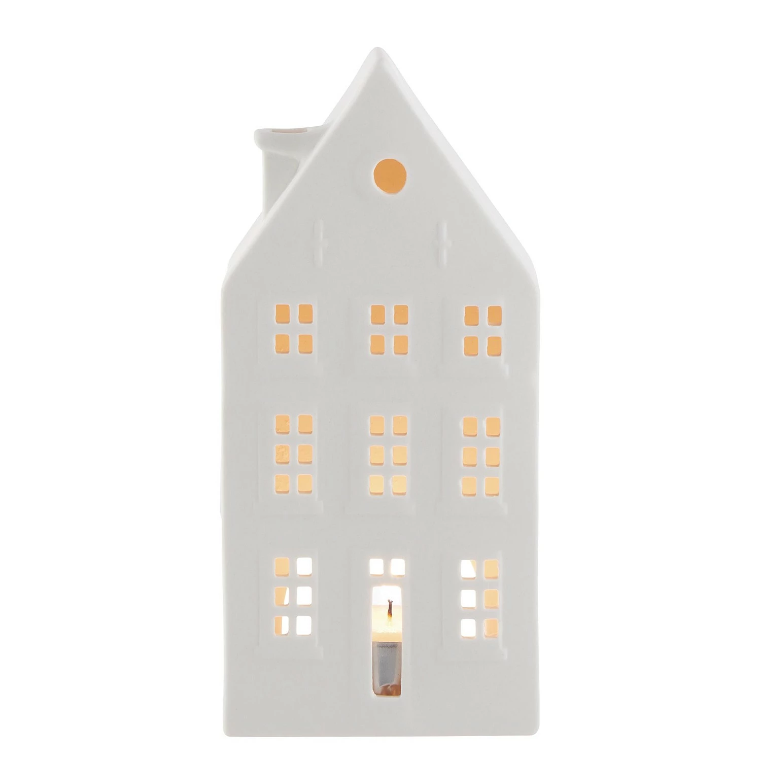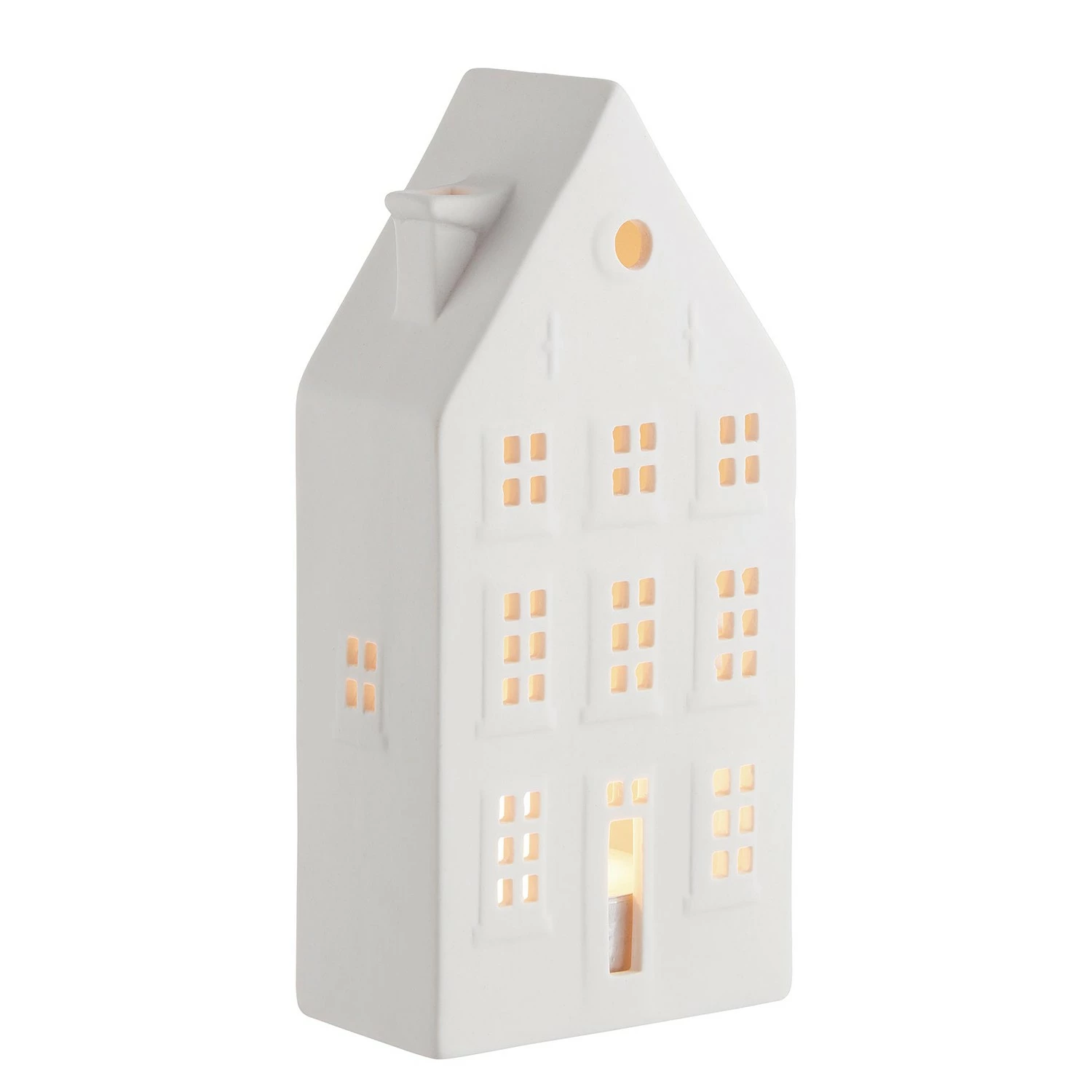 - Weitere Qualitätsmerkmale: Dekorative Teelichthäuser sind eine schöne Tradition im Winter und zur Weihnachtszeit. Das Amsterdam Teelichthaus ist aus weißer Biscuit Keramik gefertigt und liebevoll gestaltet mit vielen Fenstern, durch die der Kerzenschein stimmungsvoll funkelt. In einer weiteren Variante erhältlich.