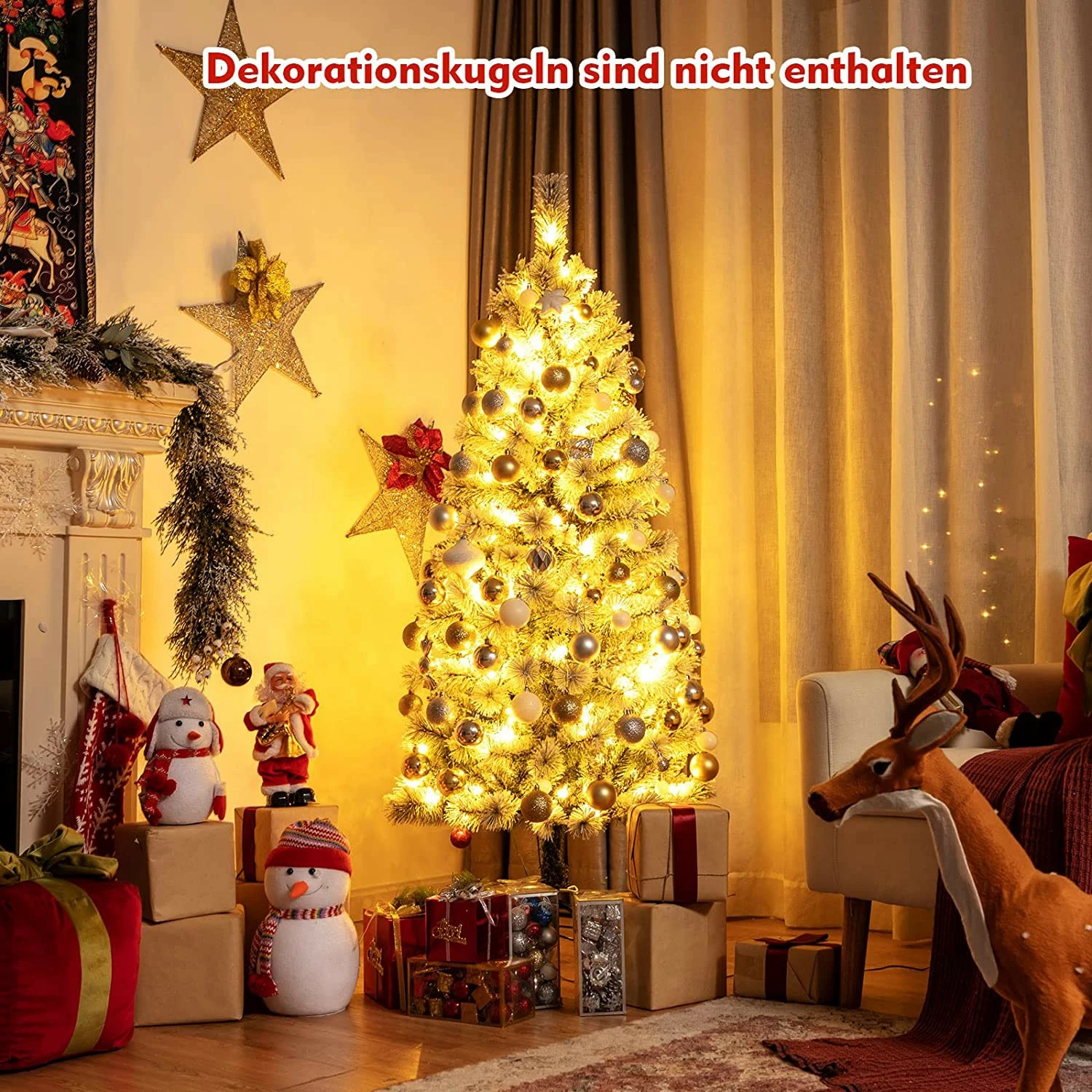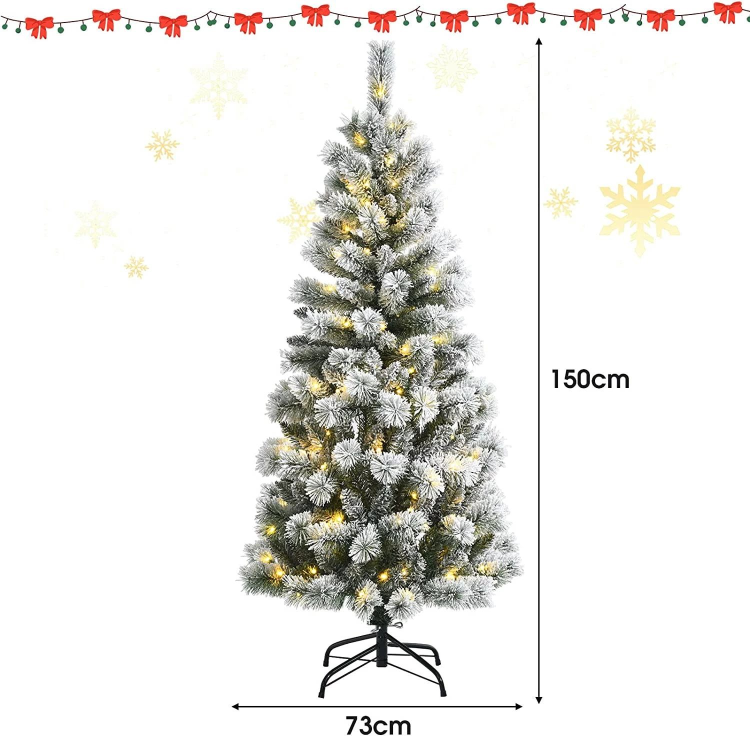 【Dichtes & charmantes Aussehen 】Durch die 279 verschneiten Zweige ist der 150cm hohe Weihnachtsbaum winterlich und sehr elegant. Abgesehen von den Lichtern ist er nicht dekoriert, sie haben also viel Platz für Baumschmuck.