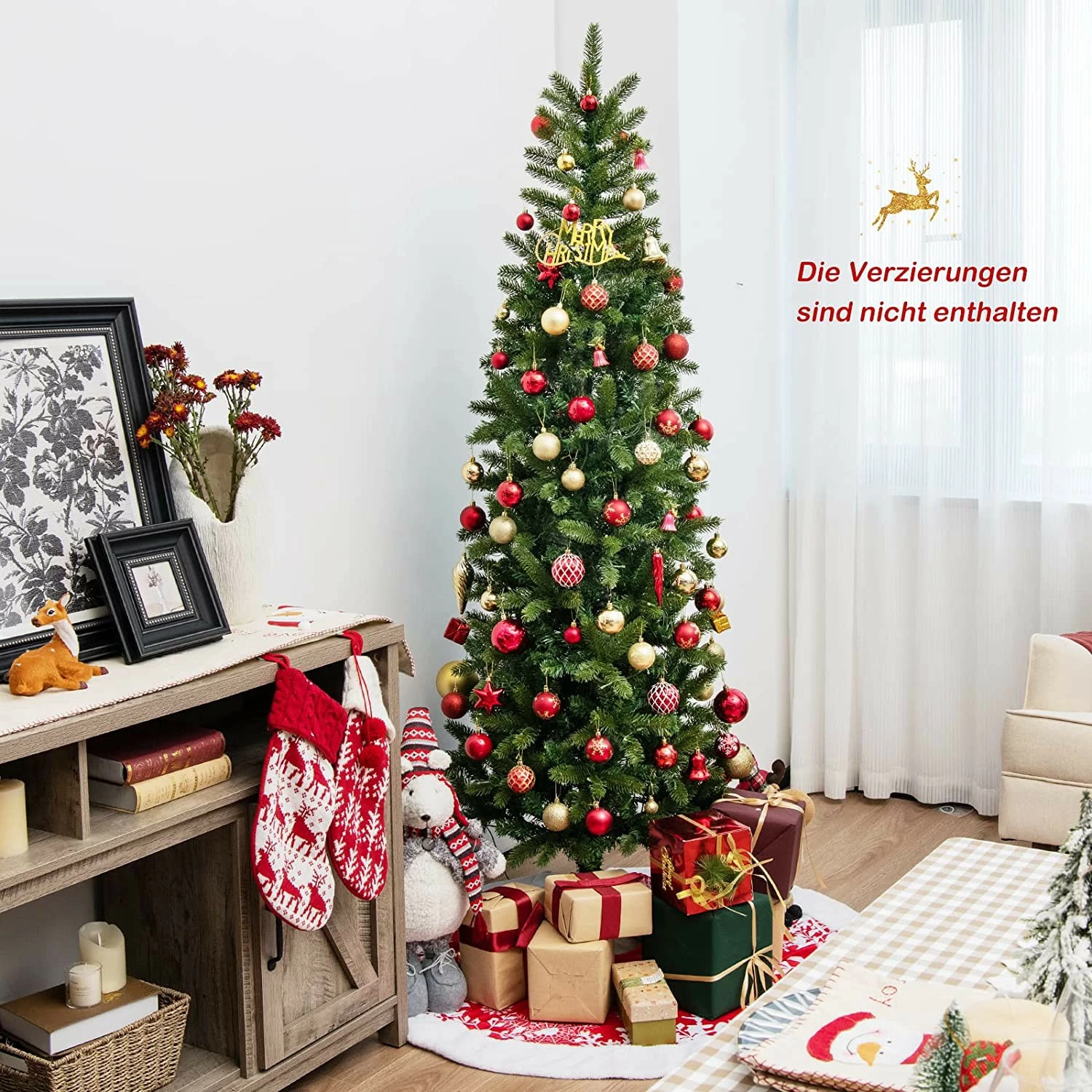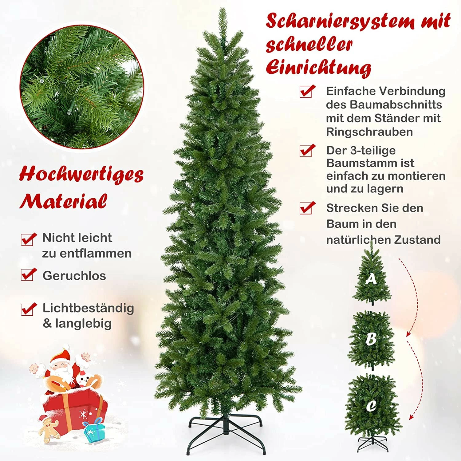 🎄【Perfekte Weihnachtsdekoration】Dank seines hohen und schlanken Designs kann der vorbeleuchtete Weihnachtsbaum Ihren Raum schmücken, während er nur eine kleine Fläche einnimmt, was ihn perfekt für Büros, Einkaufszentren, Restaurants, Schulen und Häuser macht, um Ihre Familie und Freunde durch frohe und besinnliche Weihnachtstage zu begleiten.