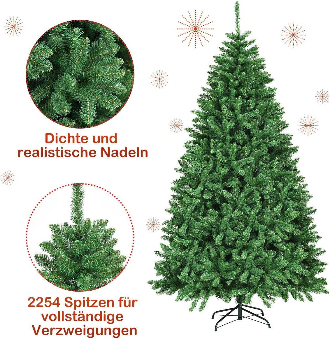 Dies ist unser brandneuer künstlicher Weihnachtsbaum, entworfen mit 2254 Spitzen, um Ihnen ein realistisches, üppiges Aussehen zu bieten. Der schlichte Weihnachtsbaum erlaubt es Ihnen, ihn mit Lametta, Christbaumkugeln, Lichtern oder anderem Schmuck, frei nach Ihren eigenen Vorlieben zu dekorieren. Egal ob für Ihr Zuhause, den Hof oder für kommerzielle Orte wie Geschäfte und Hotels, der Douglasien Baum ist der perfekte Hingucker, um noch mehr Spaß und weihnachtliche Besinnlichkeit in Ihr Leben zu bringen!