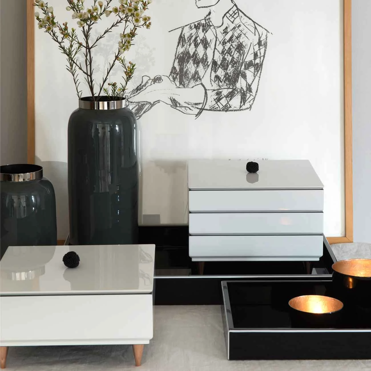 Gift Company Saigon Vase M, hellgrau/kupferfarben – Saigon Vase hochlanz M, hellgrau/kupferfarben