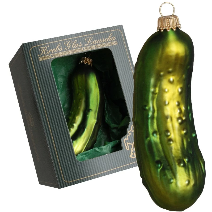 - Lieferumfang: Grün natur 11cm Weihnachtsgurke, Glasornament, mundgeblasen, handbemalt