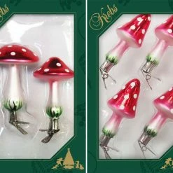 - Lieferumfang: Weiß/Rot 10cm Pilzsortiment auf Clip aus Glas mundgeblasen, handdekoriert 2-fach