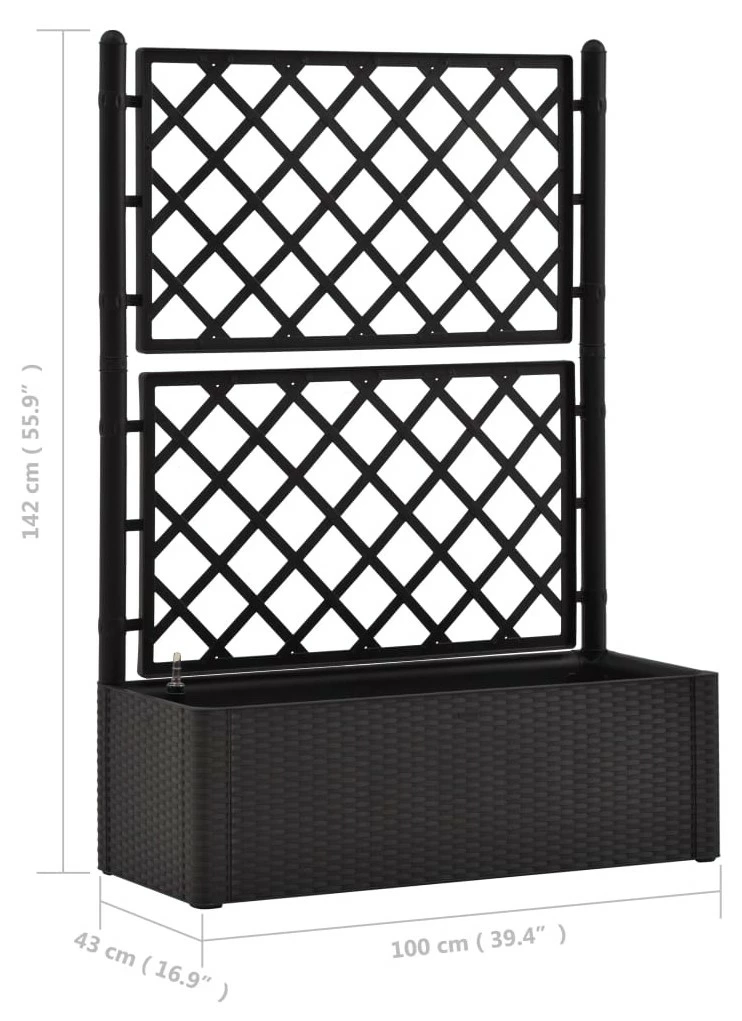 Schaffen Sie einen schönen Hingucker mit diesem eleganten, funktionalen und einzigartigen selbstbewässernden Hochbeet! Dieser Spalier-Pflanzkübel hat einen großen Blumenkasten, der eine große Anzahl grüner Pflanzen und Blumen aufnehmen kann.